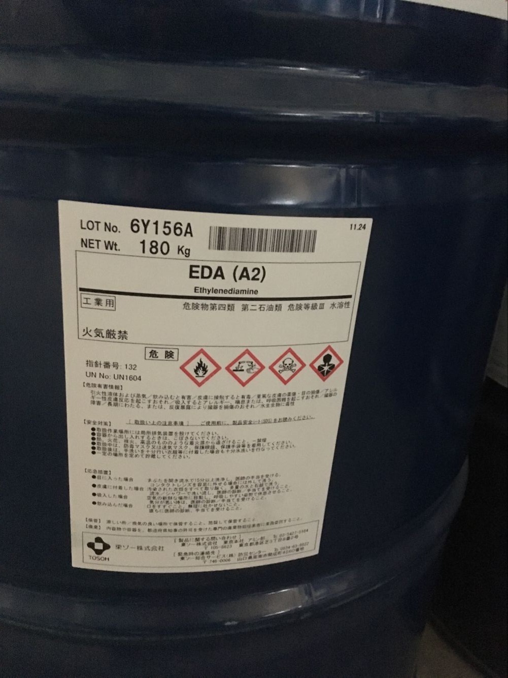 產(chǎn)品名 | 乙二胺 | 英文名 | Ethylenediamine(EDA) | 產(chǎn)品外觀 | 無色透明液體 | 包裝規(guī)格 | 180kg/桶(鐵桶) | 產(chǎn)地 | 日本 | 供應(yīng)商 | 東曹 | 應(yīng)用 | 農(nóng)藥、固化劑、聚酰胺樹脂等 | 危險(xiǎn)類別 | 3類危化品(易制爆) | CAS NO | 107-15-3 |