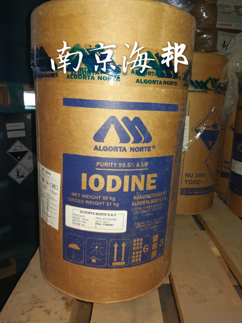 產(chǎn)品名 | 碘 | 英文名 | Iodine | 產(chǎn)品外觀 | 紫黑色有光澤的固體 | 包裝規(guī)格 | 50kg/桶(紙板桶) | 產(chǎn)地 | 智利 | 供應(yīng)商 | ALGORTA | 應(yīng)用 | 制造藥物、染料、消毒劑和碘化物等 | 危險類別 | 非; | CAS NO | 7553-56-2 |