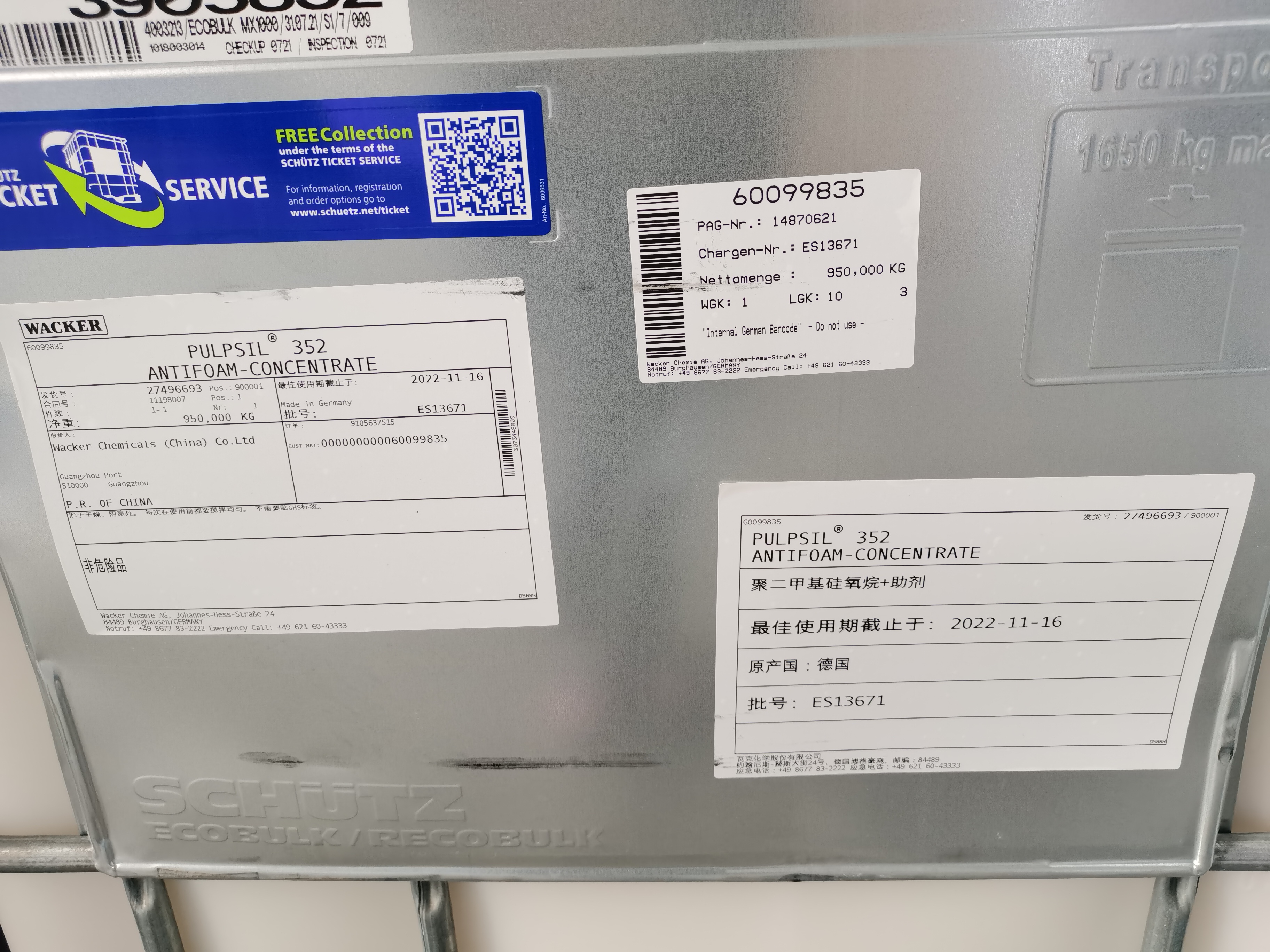 產(chǎn)品名 | PULPSIL 352 | 英文名 | Antifoam | 產(chǎn)品外觀 | 乳白色膏狀物 | 包裝規(guī)格 | 950kg/桶 | 產(chǎn)地 | 德國 | 供應(yīng)商 | 瓦克 | 應(yīng)用 | 用在農(nóng)藥、紡織等;